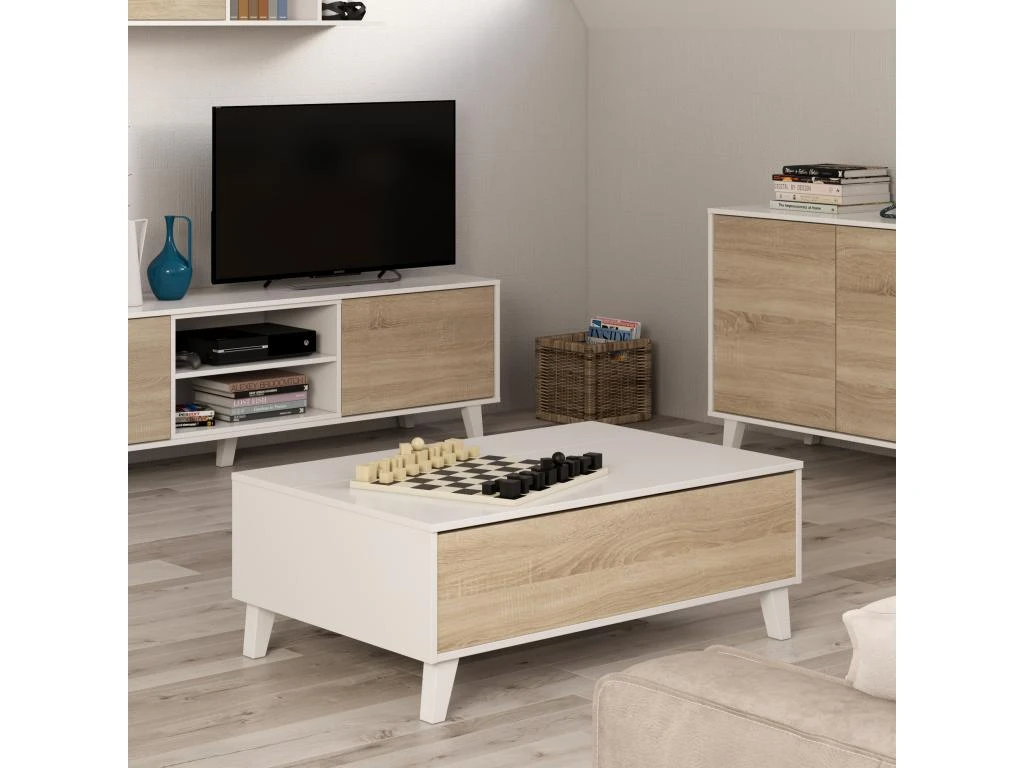 · Table basse en mélamine de haute qualité et durable; Produit Certifié par le PEFC (Association Espagnole pour la Durabilité des Forêts), couleur Chêne/Blanc, permettant au style moderne par excellence d’entrer dans votre maison.