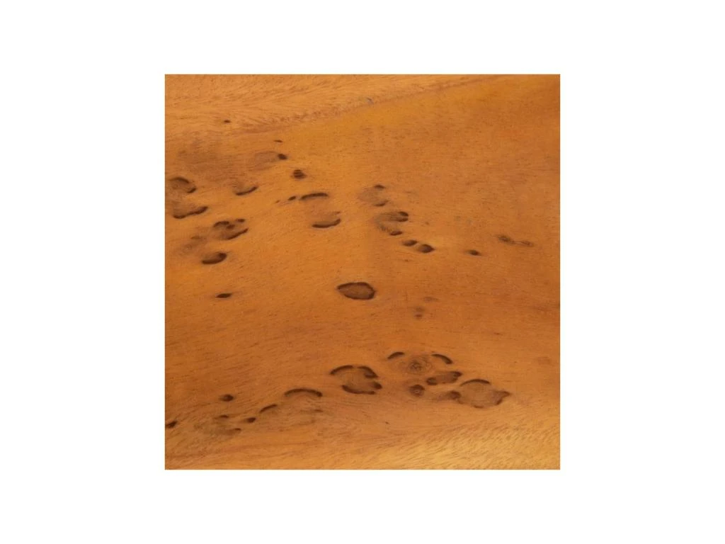 Toute la beauté de cette table de salon réside dans la mise en oeuvre d’un bois ayant conservé toutes ses particularités naturelles, ainsi veinage, noeuds et imperfections lui permettront de faire entrer la tendance nature dans votre déco.