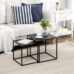 Ensemble De Tables D’appoint, 100 % Aggloméré Plaqué Mélamine, Couleur Chêne Noir 104x50x50