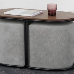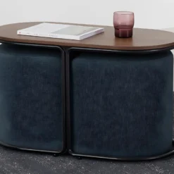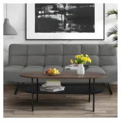 Table Basse 2 Plateaux – Décor Noyer Et Pied En Métal – Contemporain – L 110 X P 70 X H 40 – LODGE