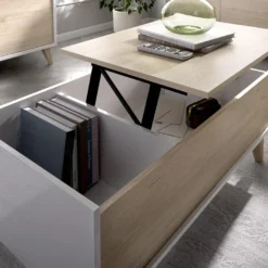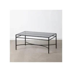 Table Basse Rectangulaire – Decors Marbre Pietement Metal Noir – L 120 X L 60 X H 43 Cm – MABLE