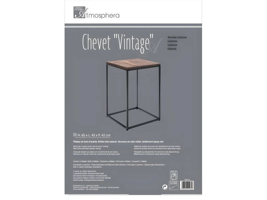 Table d’appoint en Bois d’Acacia et Métal noir – Dimensions : L. 42 x l. 42 x H. 65 cm – Matière du plateau : Bois d’ Acacia – Matière de la structure : Métal – Poids : 4,5 kg.