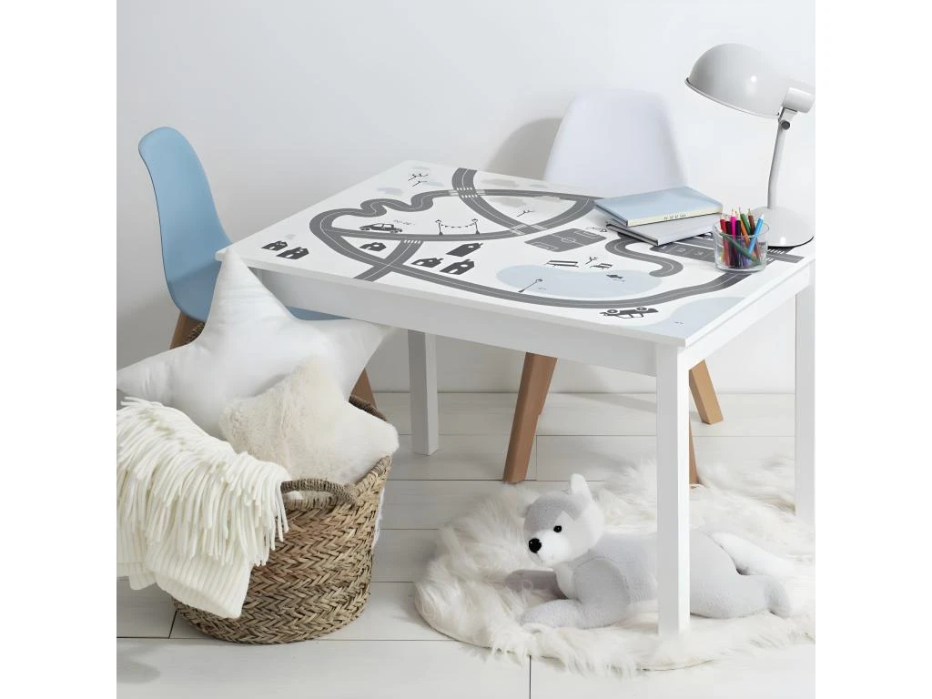 Table pour Enfant en Bois Blanc et Gris H 48 cm (-) Dimensions : L. 77 x P. 55 x H. 48 cm –