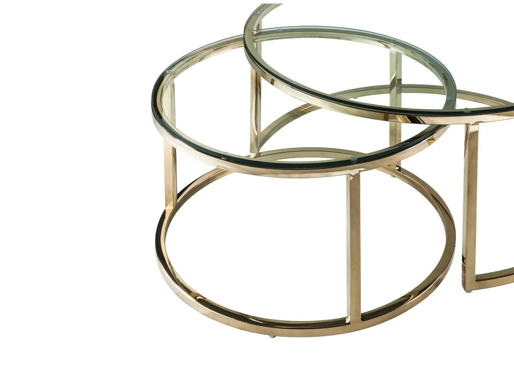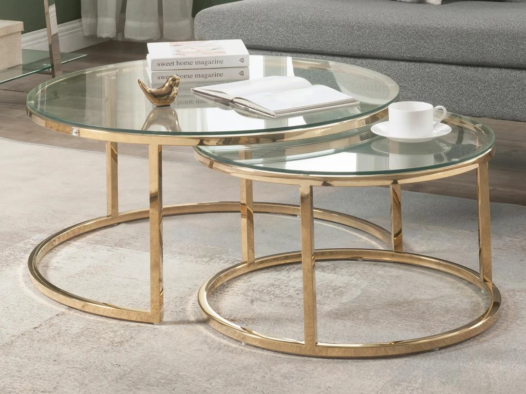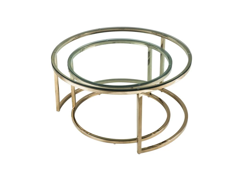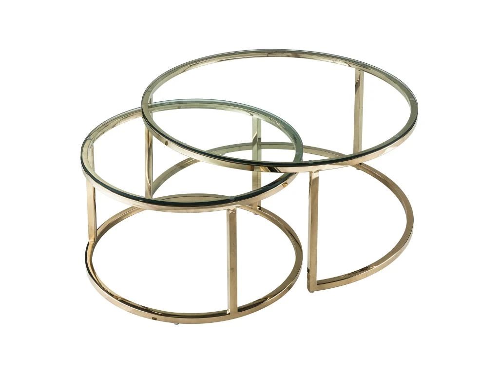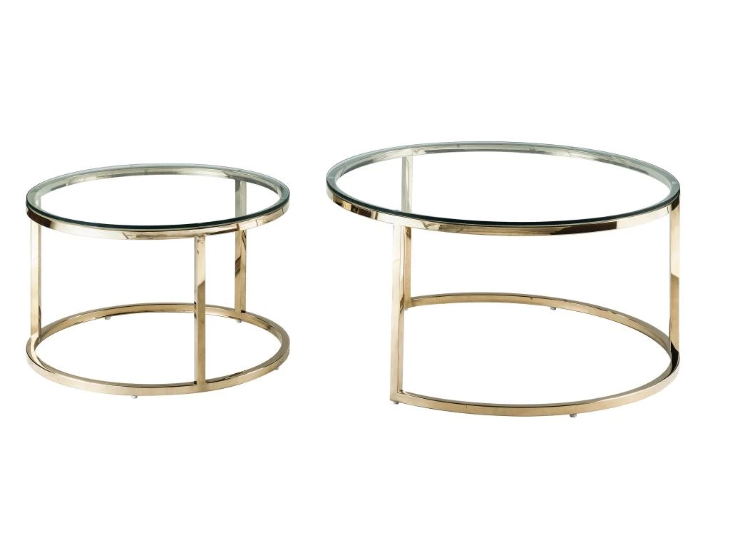 On ne résiste pas à l’alliance des matières des deux tables basses gigognes MAEVANE en verre trempé et acier inoxydable doré. Leurs matériaux et leur forme ronde apporteront délicatesse et luminosité à votre salon.