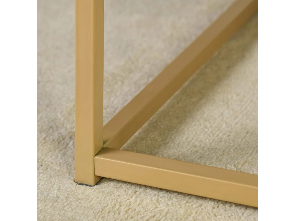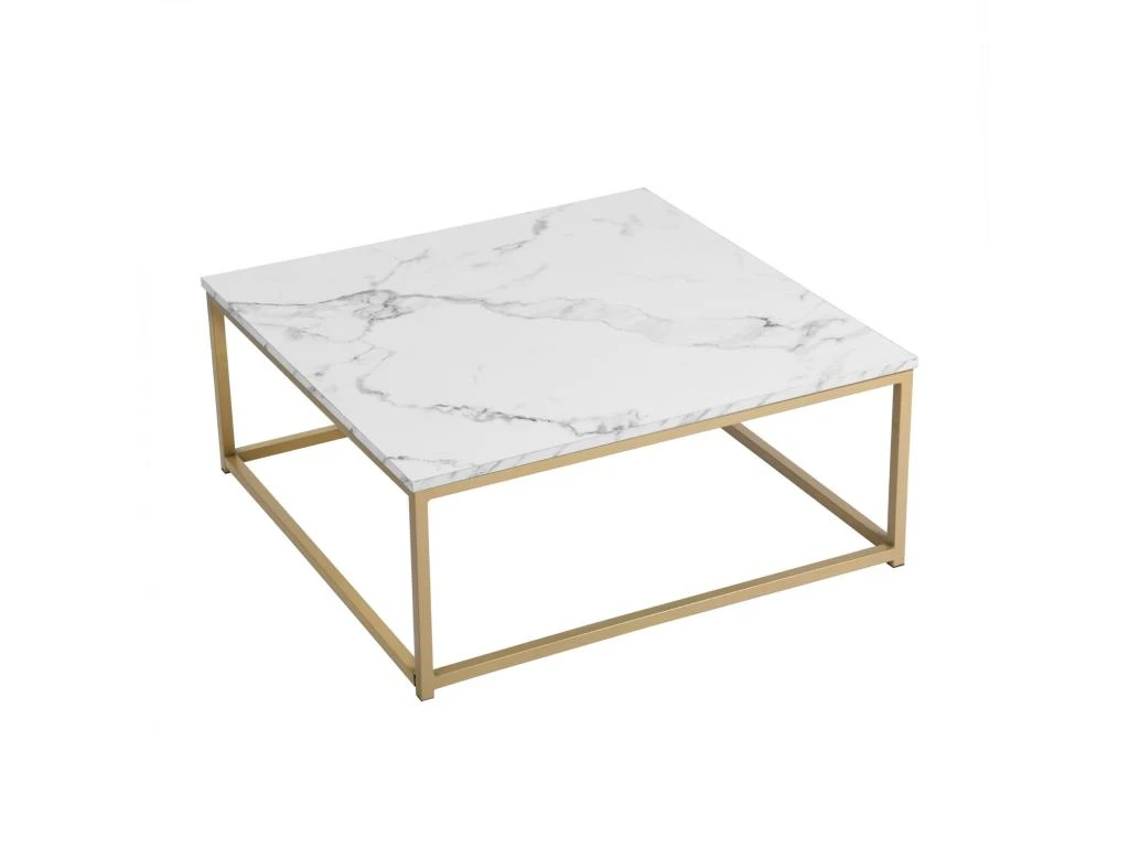 Robuste et durable : le plateau de table en panneau de particules et le placage marbré imitent parfaitement la pierre naturelle noble, et la structure métallique revêtue par poudre de couleur dorée assurent la stabilité nécessaire.