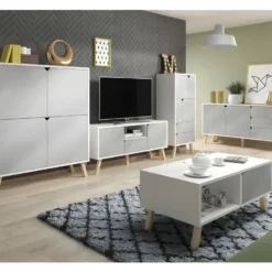 Les 2 portes de cette armoire de salon dégagent l’accès à près de 2.5 mètres linéaires de surface de pose répartis entre plusieurs niches.