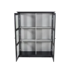 Mariant un piétement en métal laqué Noir, une structure revêtue d’un véritable placage d’ébénisterie bois de Chêne teinte noire et de panneaux en verre ondulé ce meuble de rangement à la dimension contenue bénéficie d’une qualité perçue réellement valorisante.
