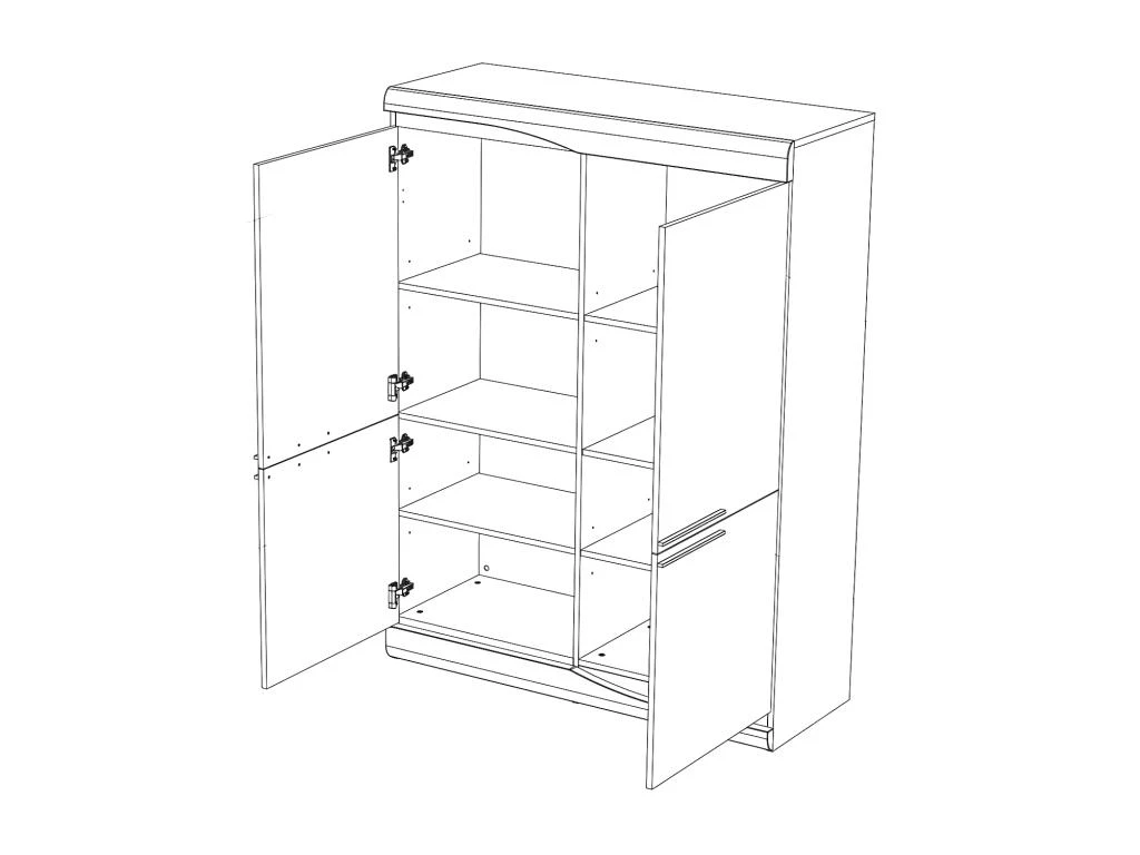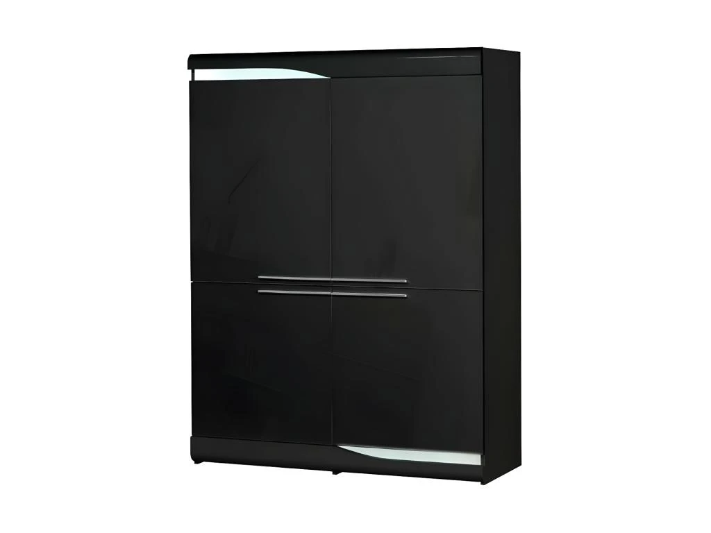 Les 4 espaces dégagés par l’ouverture des portes permettront de ranger vaisselle, verres, linge de table et même un espace bar, ce meuble pourra ainsi prendre place dans un salon où il sera utilisé comme armoire de salon, voire comme élément d’une composition TV à l’impact visuel saisissant.