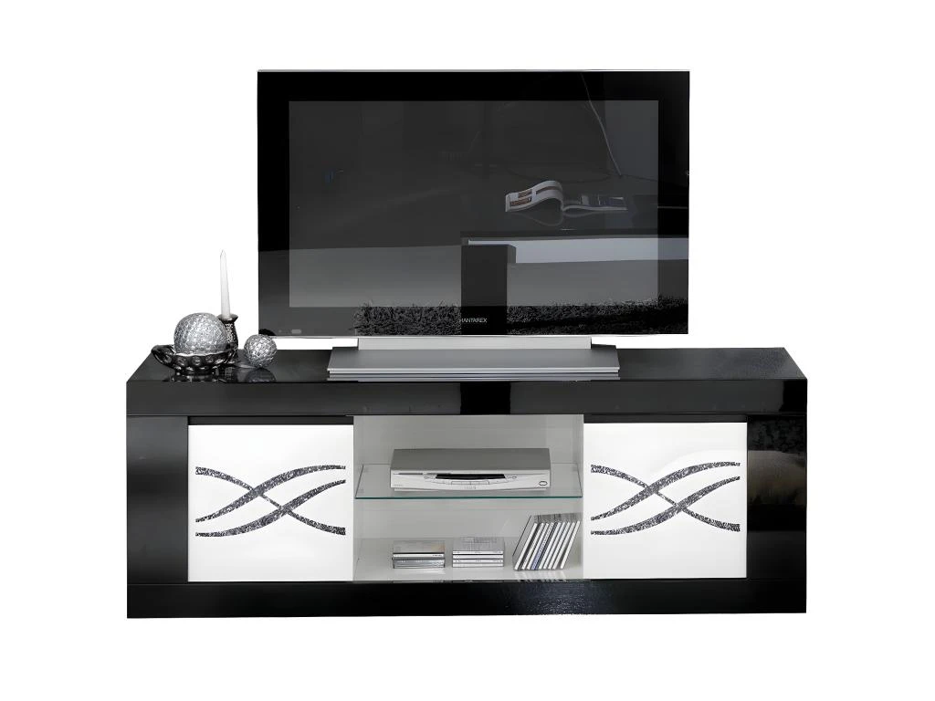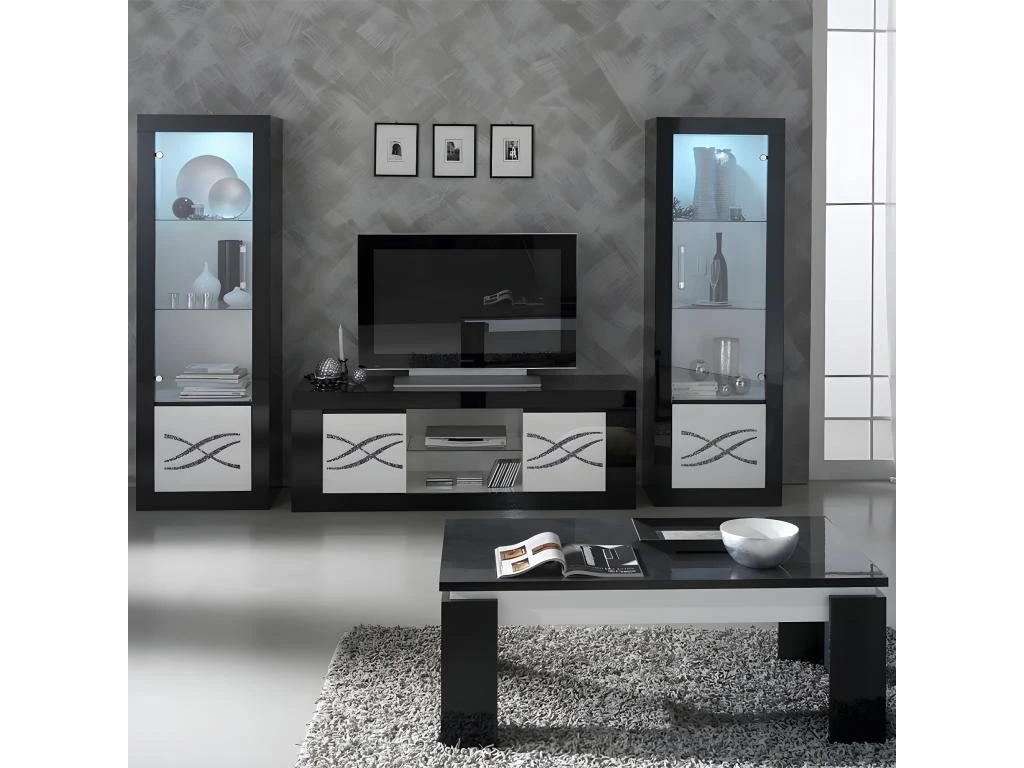 Un meuble à la fois décoratif et pratique ! Outre ses rangements ainsi que sa niche centrale permettant d’entreposer télécommandes, DVD et autres accessoires, ce meuble arbore un look très contemporain alliant le blanc et le noir, le tout renforcé par un plateau effet marbré du plus bel effet. Misez sur une ambiance épurée et sophistiquée avec le reste des meubles de la série Victoria.