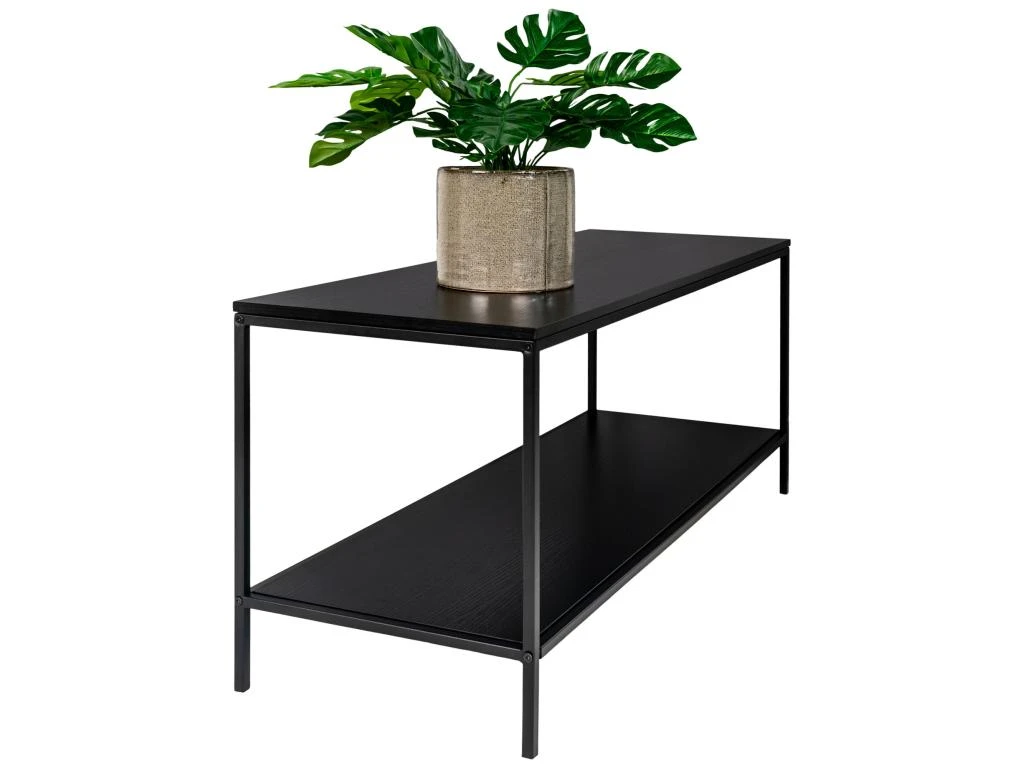 Ce meuble bi-matière rectangulaire est fabriqué en bois teinte naturelle ou noir et métal noir, avec deux étagères. Il mesure 100 x 36 x 45 cm et son design conviendra à toutes les décorations. Très pratique, il se fait aussi discret pour ne pas encombrer la pièce de vie. Vous pourrez poser une petite télé sur le plateau haut, ou si votre grand écran est fixé au mur du salon, vous pouvez installer consoles de jeux, matériel hifi et autres objets sur le meuble.