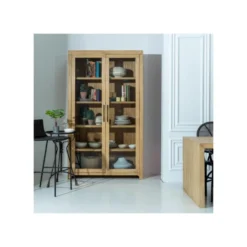 L’ouverture de ces 2 portes à panneaux vitrés dégage l’accès à 3 surfaces de pose, dont 2 vitrées assurent une parfaite mise en valeur des objets déposés, et sur 4 niches qui vous rendront de fiers services.