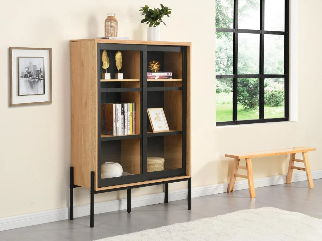 La collection industrielle MEMPHIS II se démarque par son style résolument industriel et par son esprit vintage. Doté de nombreux rangements, la vitrine MEMPHIS II présente un piètement original. Son aspect bicolore chêne et noir lui apporte une touche de modernité irrésistible. Cette vitrine MEMPHIS II vous permet de mettre en avant vos plus beaux objets et vous offre un panel de rangements.