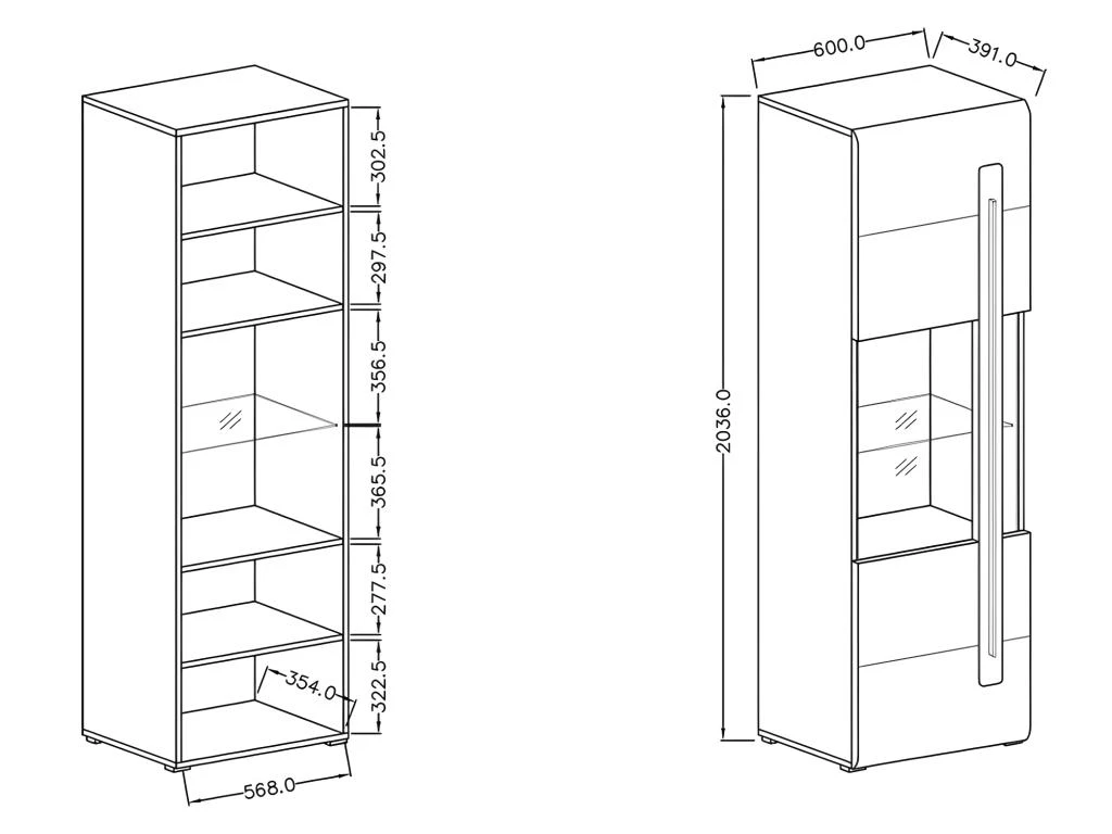 Cette vitrine au style design, de dimensions 60x203x39 cm, est un meuble incontournable pour mettre en valeur vos objets de décoration préférés.