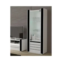 Ne cherchez plus, la vitrine petit modèle LINA blanche et noire brillante avec LED est le meuble idéal pour ajouter une touche de sophistication à votre intérieur. Commandez dès maintenant et profitez d’un meuble design et pratique pour mettre en valeur vos objets précieux.
