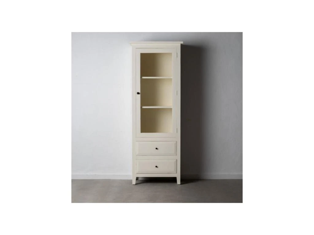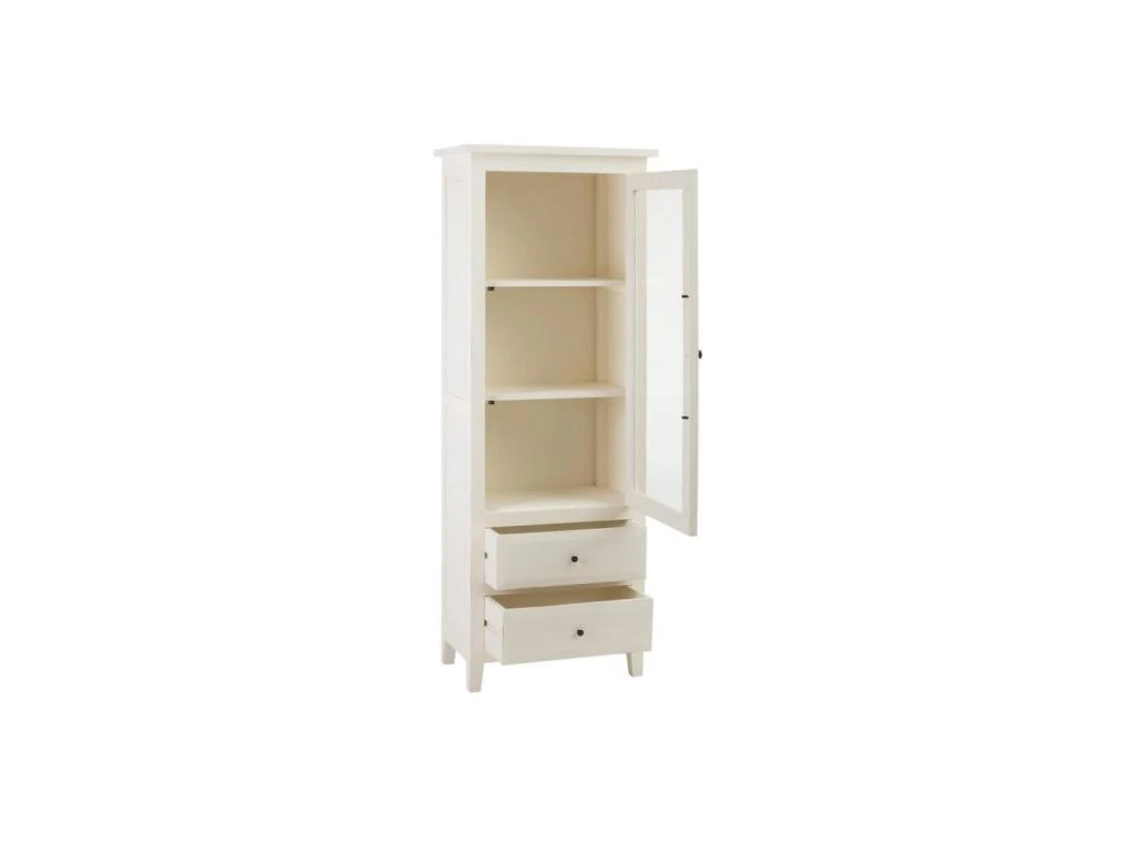 Mise en teinte lumineuse et design intemporel garantissent à cette vitrine 1 porte 2 tiroirs de pouvoir prendre place dans une maison déco ambiance bord de mer.
